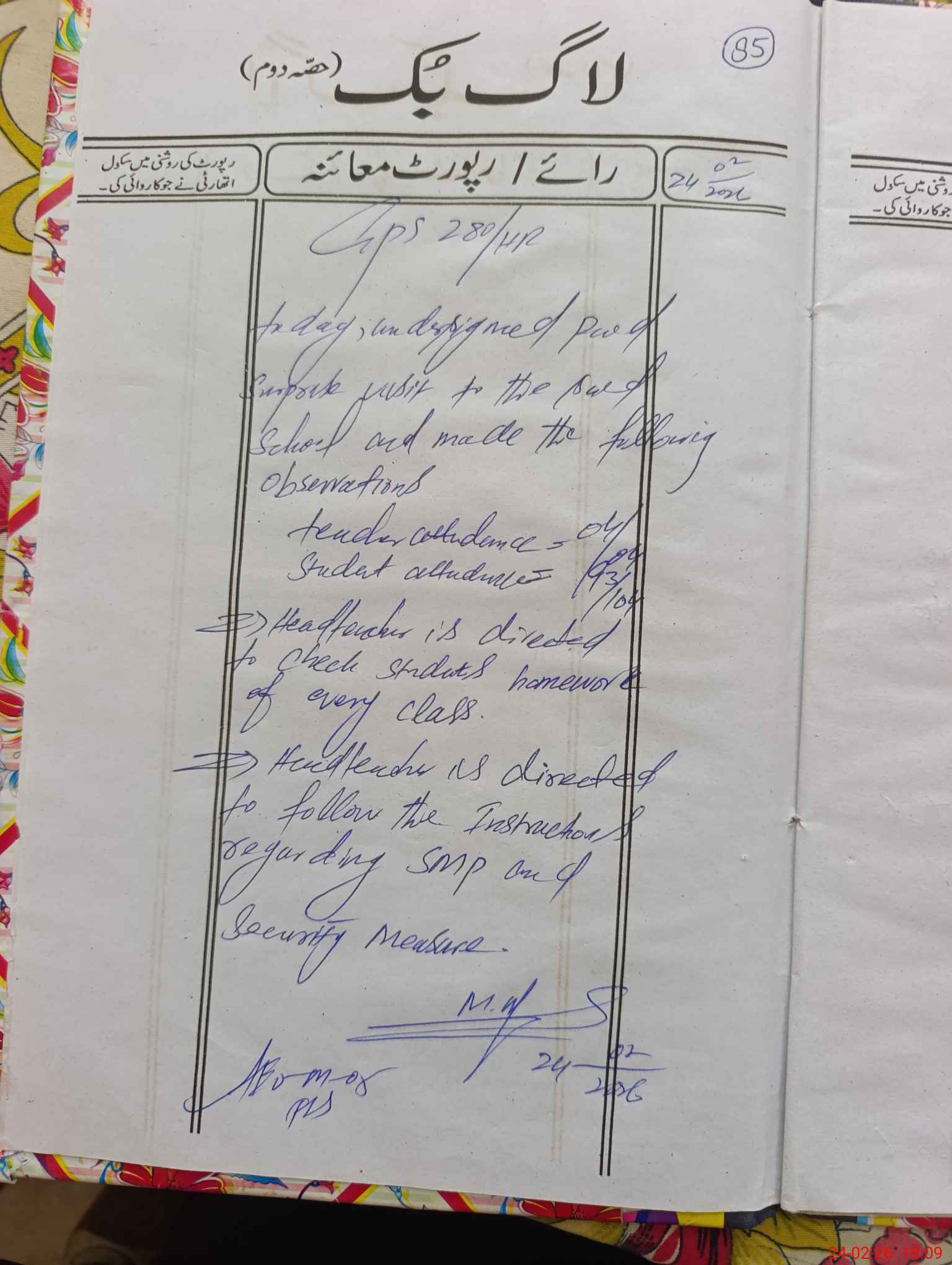 | Certified that this School was Inspected by the Undersigned MEA/DMO Today and the Information Stated Above is as Per Record. | |||||