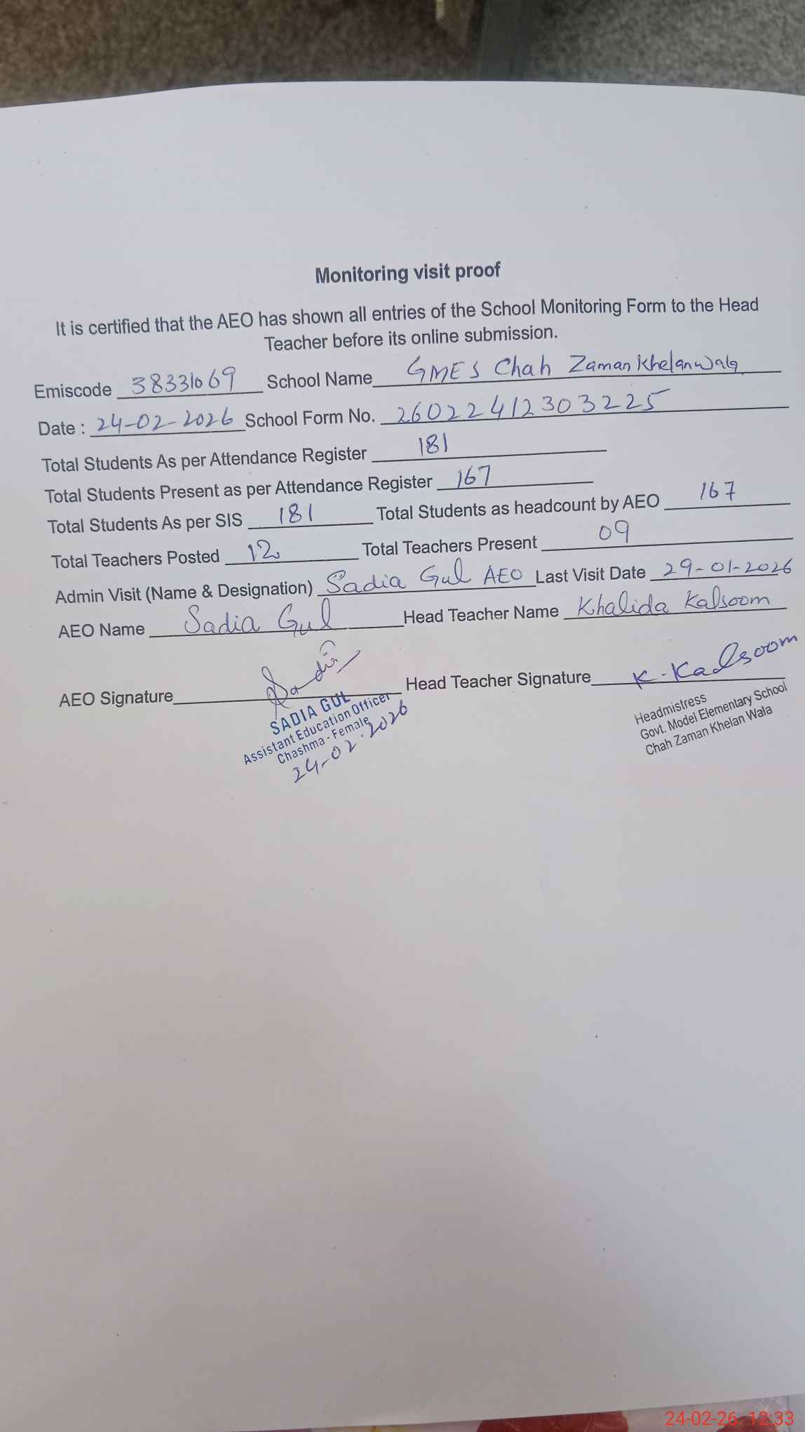 | EMIS Code: 38331069 | Name of School: GMES CHAH ZAMAN KHELAN WALA | |||