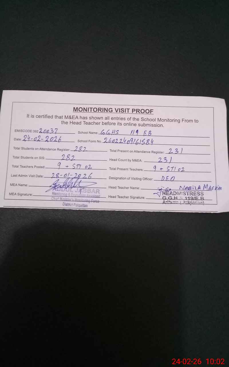 | EMIS Code: 39220037 | Name of School: GGHS 119 EB | |||