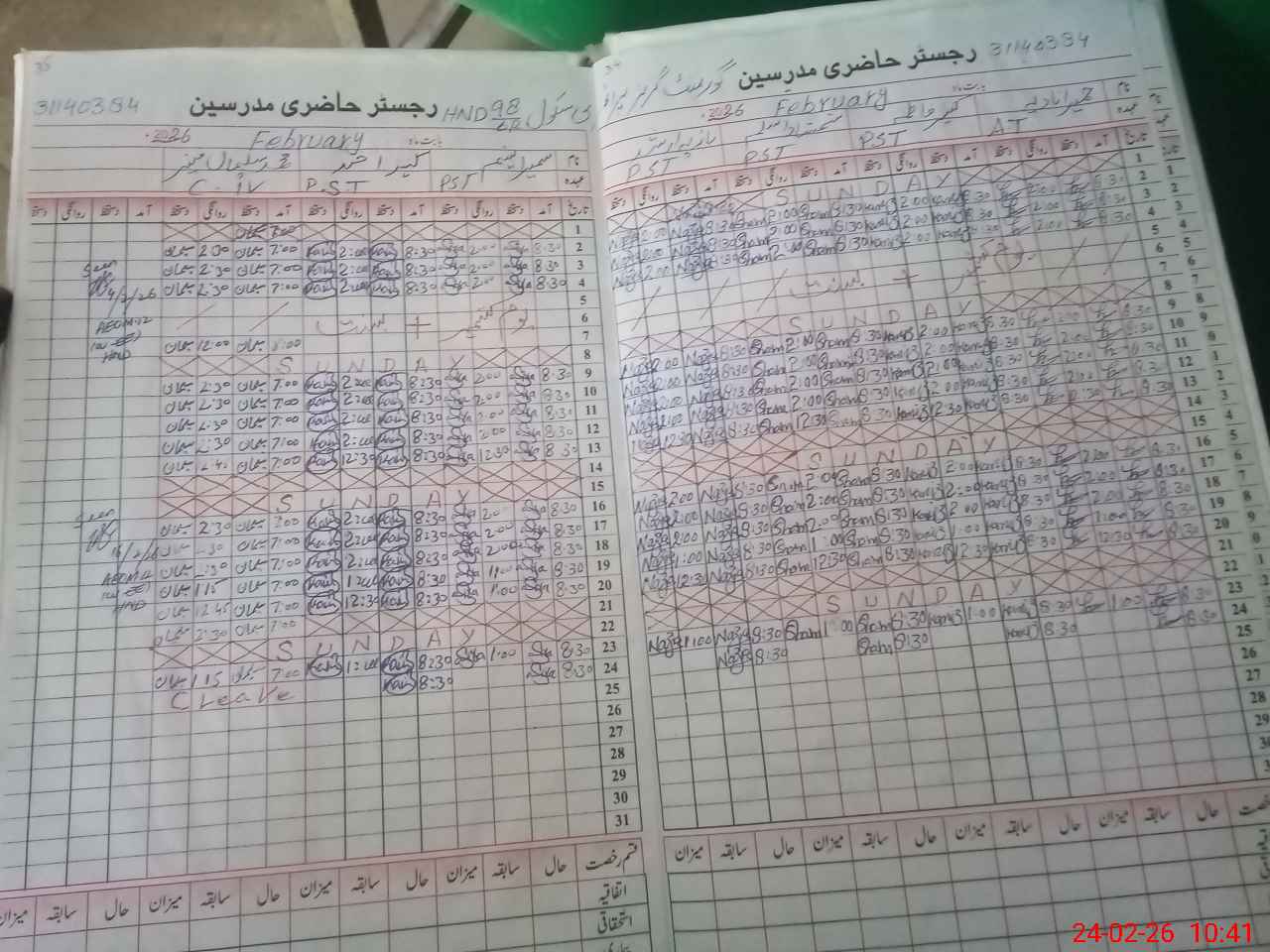 | CNIC | Full Name | Designation | R/C | Absence During Last Calender Month |