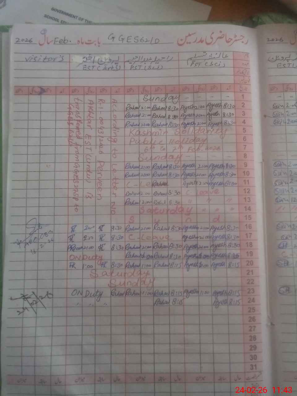 | Leave | Duty | Absent | Maternity | Medical | Ex- Pak |