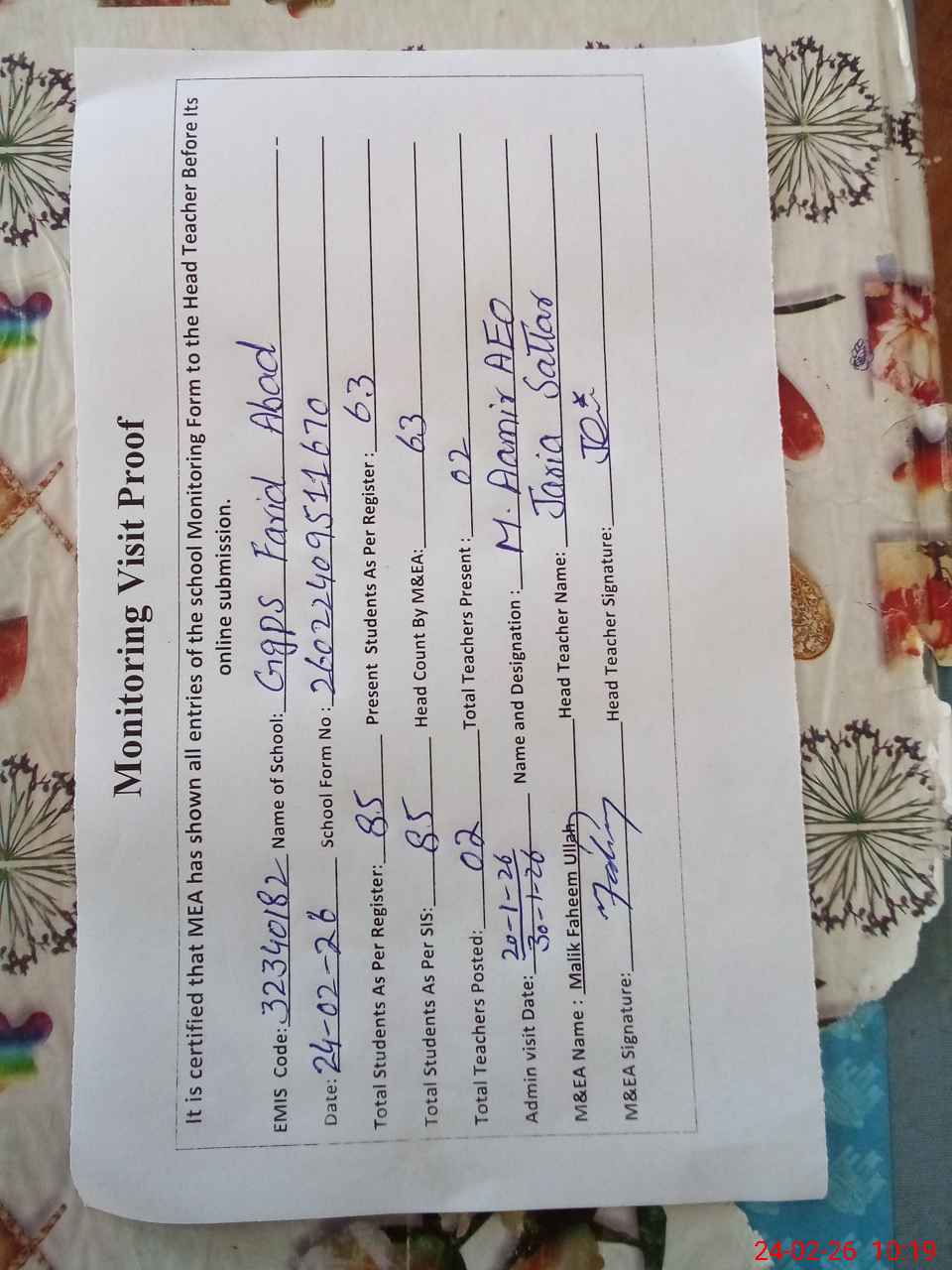 | EMIS Code: 32340182 | Name of School: GGPS FARID ABAD | |||