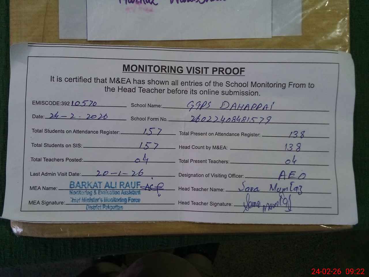 | EMIS Code: 39210570 | Name of School: GGPS DHAPAI | |||