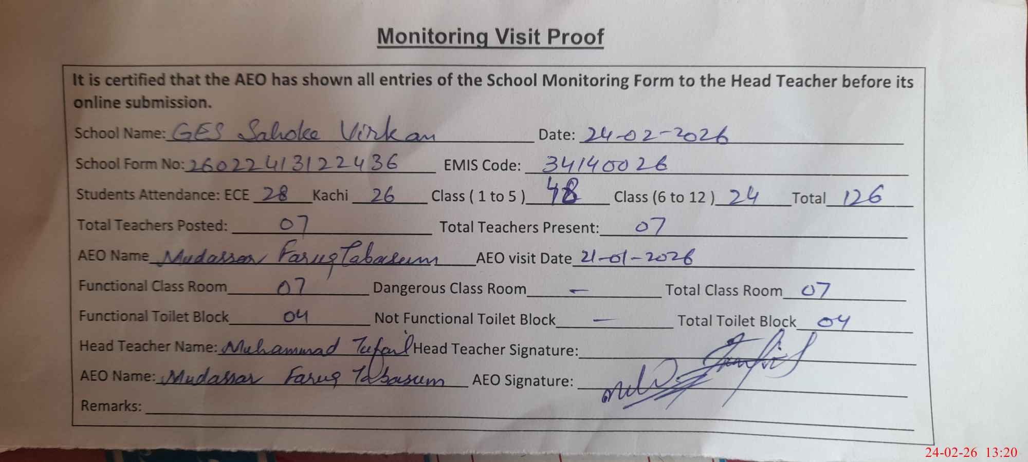 | EMIS Code: 34140026 | Name of School: GES SAHOKE VIRKAN | |||