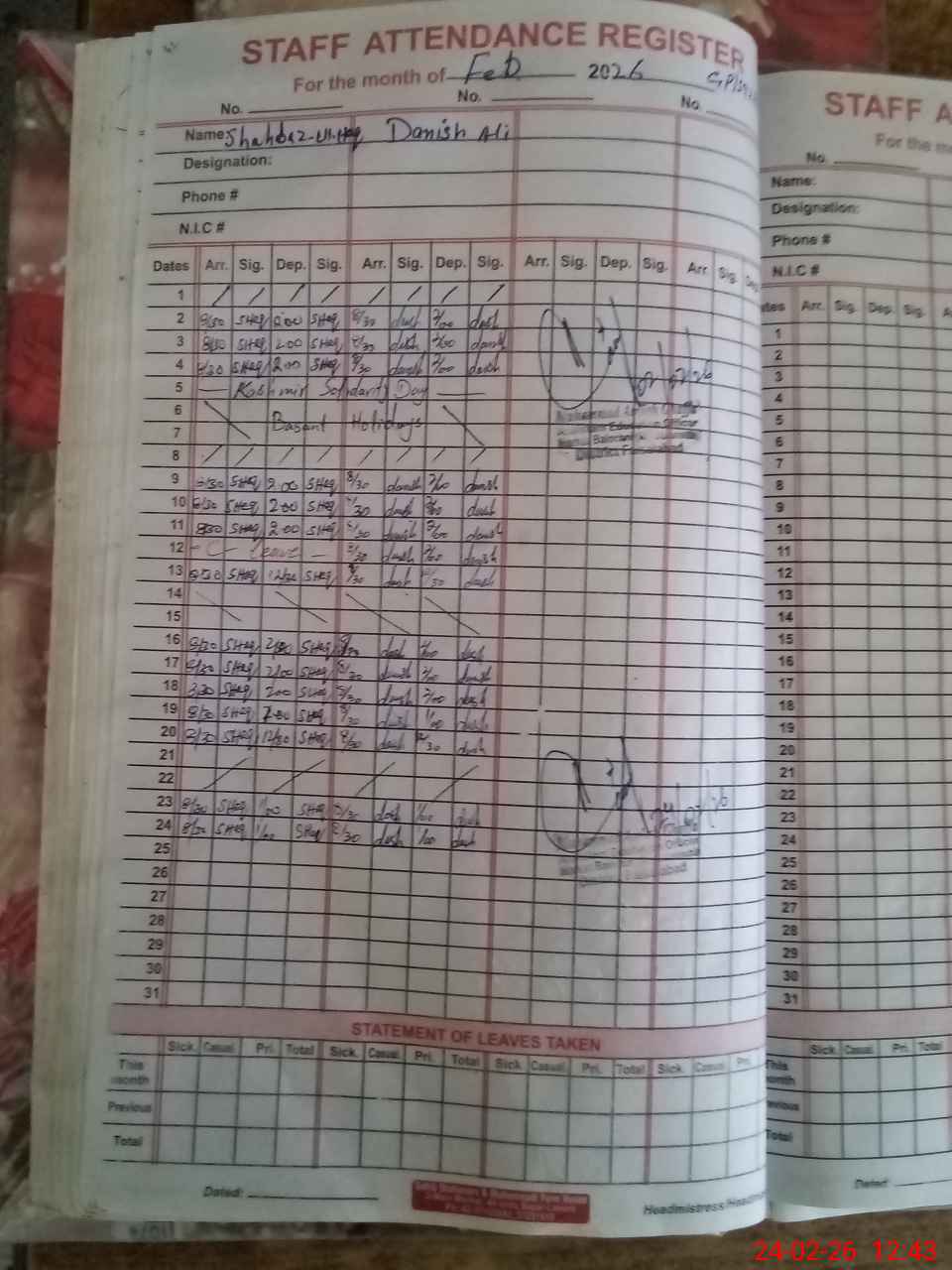 | Name: SH**** ULHA**** Designation: (School Headmaster's/Headmistress's) PST Phone/Cell Number: 03**** |