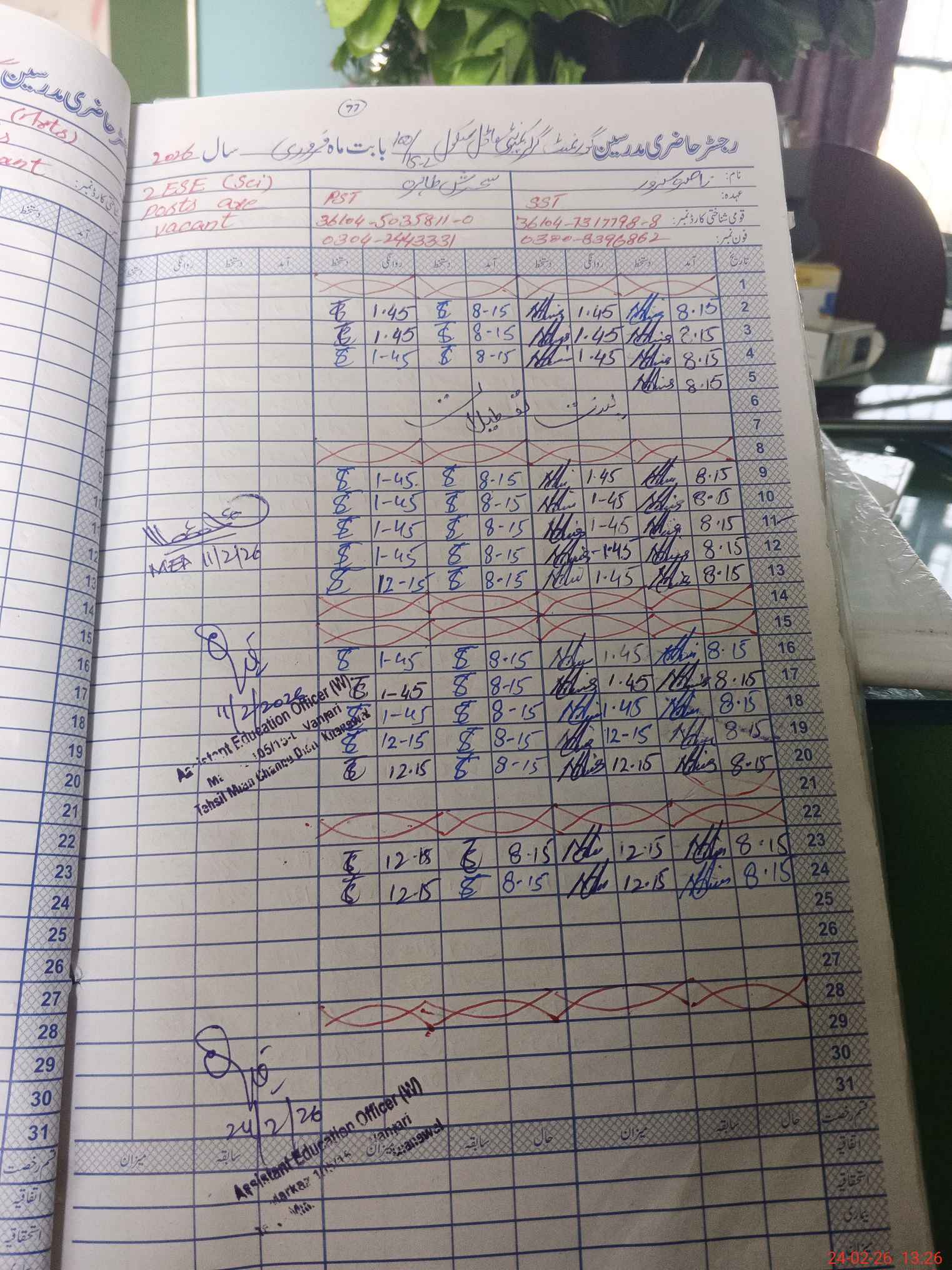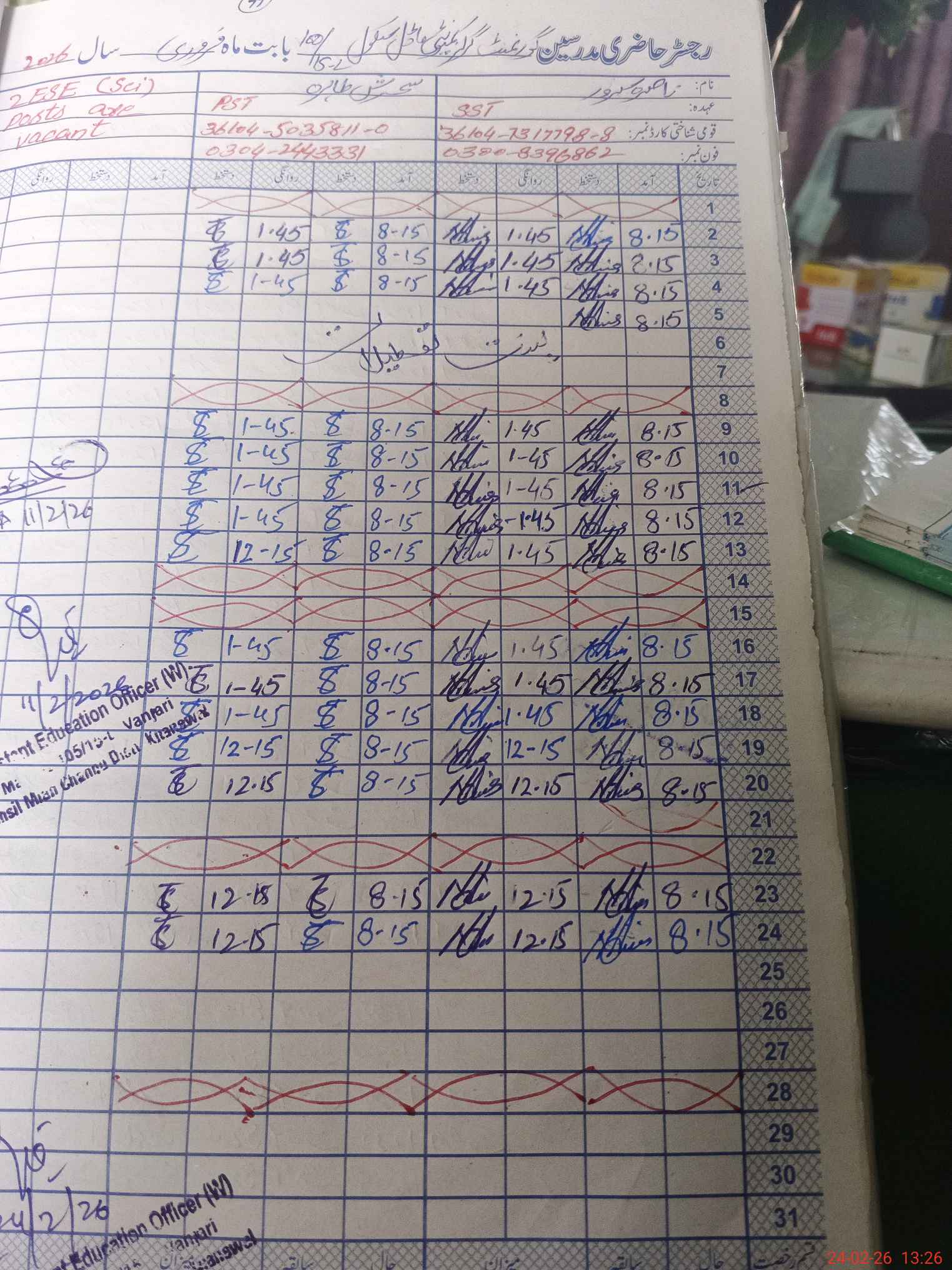| Name: NA**** SA**** Designation: (School Headmaster's/Headmistress's) S.S.T.(GENERAL Phone/Cell Number: 03**** |