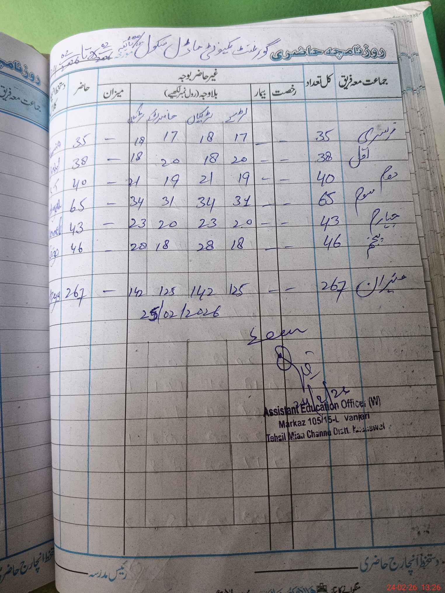 | District: KHANEWAL | Tehsil: MIAN CHANNU | Markaz: 105/15-L - FEMALE | Level: Primary | |