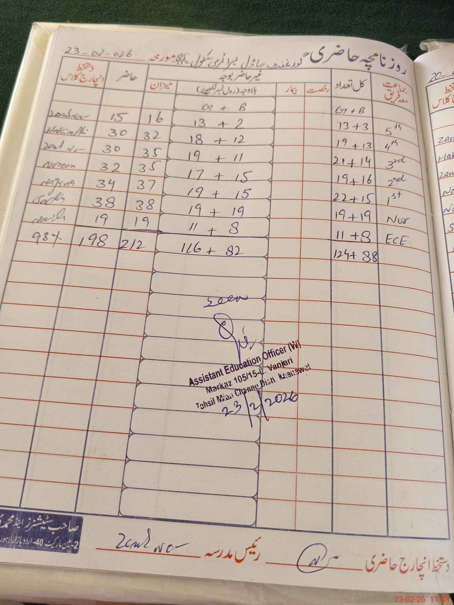 | District: KHANEWAL | Tehsil: MIAN CHANNU | Markaz: 105/15-L - FEMALE | Level: Primary | |