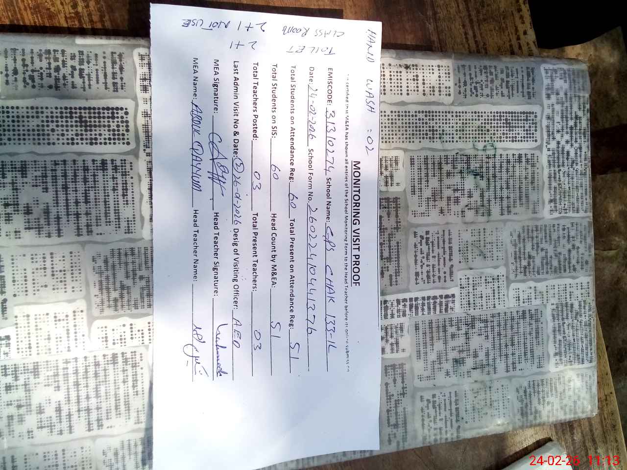 | EMIS Code: 31310274 | Name of School: GPS CHAK NO. 133/1-L | |||