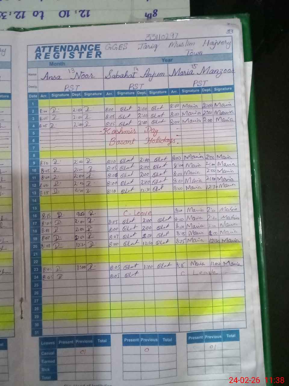 | 33**** | Ma**** Ma**** | PST Science/Maths | Regular | 2 | 0 | 0 | 0 | 0 | 0 | 0 | 0 | 2 | Casual |