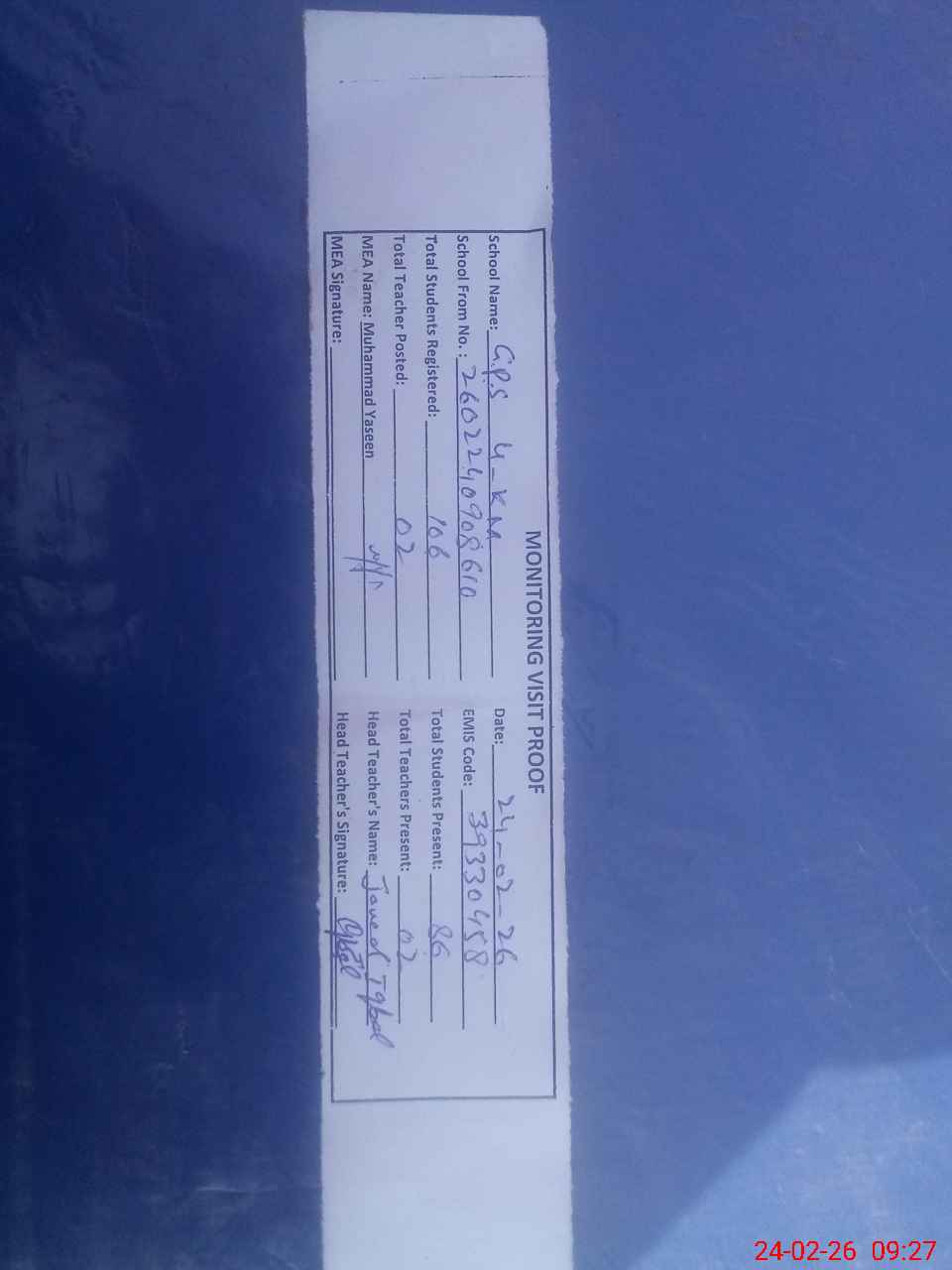 | EMIS Code: 39330458 | Name of School: GPS CHAK NO. 4 KM | |||