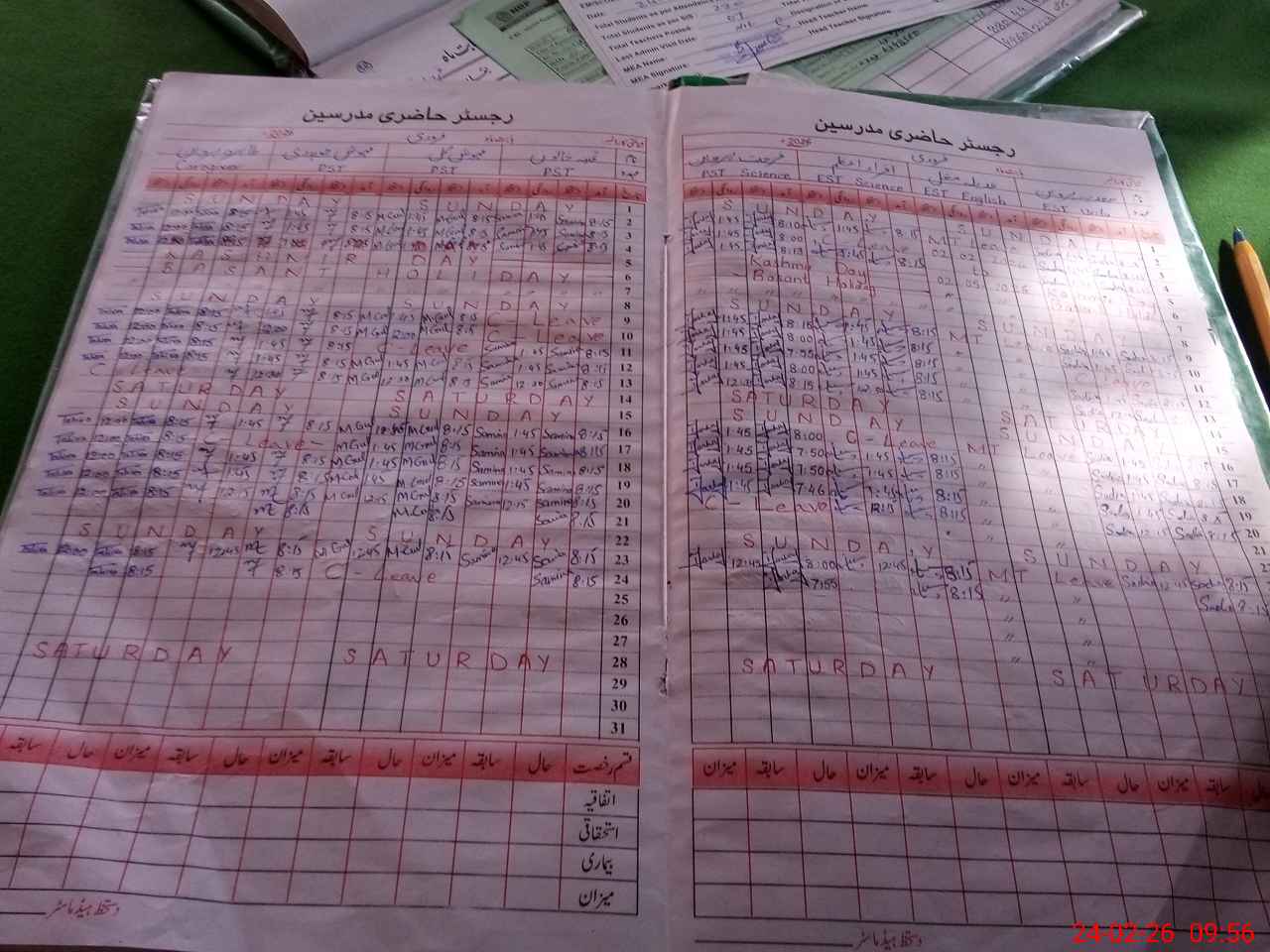| Leave | Duty | Absent | Maternity | Medical | Ex- Pak |