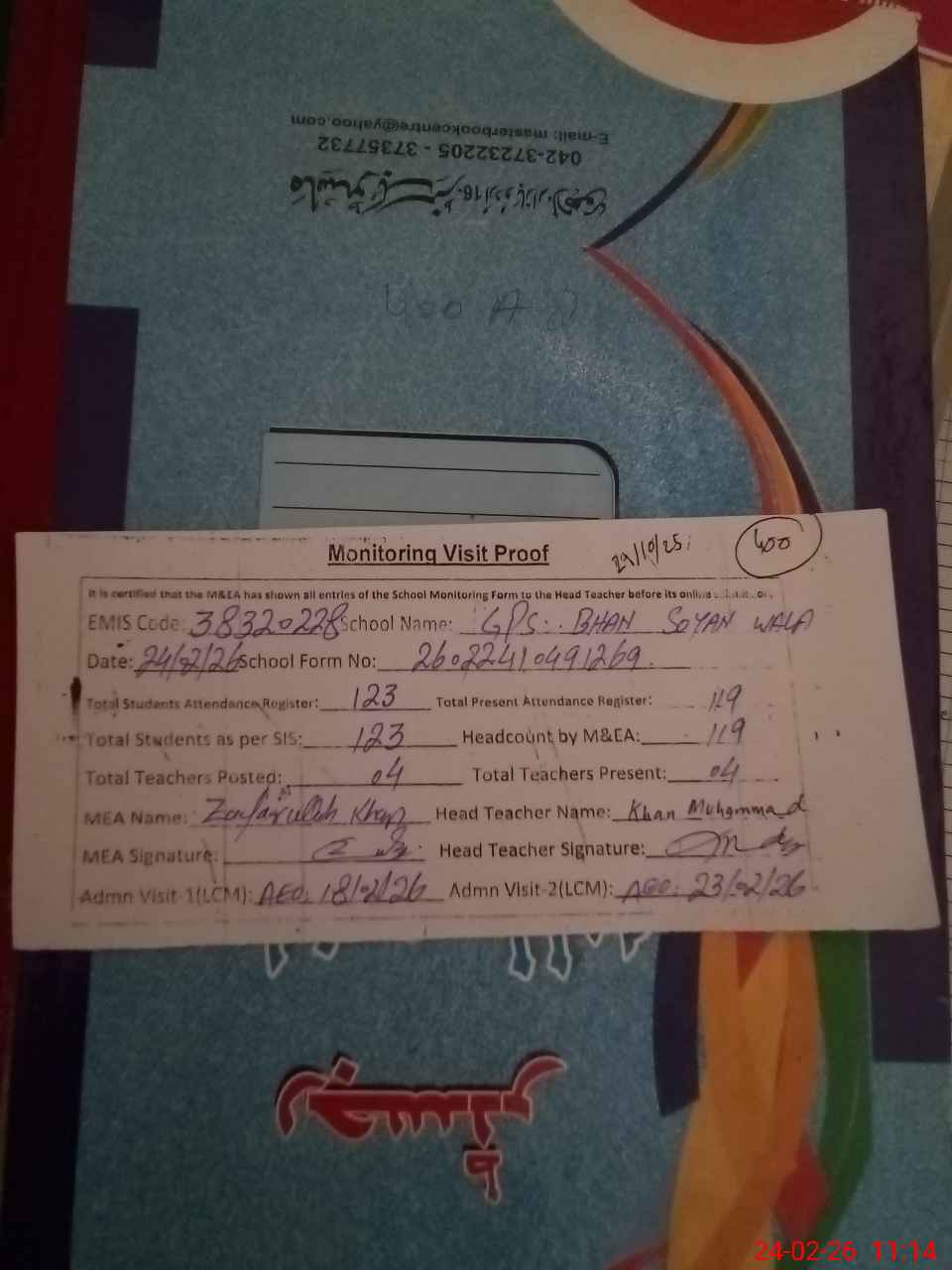 | EMIS Code: 38320228 | Name of School: GPS BHAN SOYAN WALA | |||
