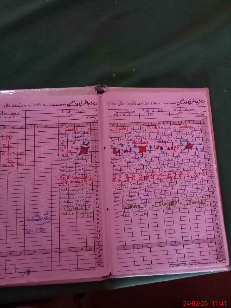 | CNIC | Full Name | Designation | R/C | Absence During Last Calender Month |