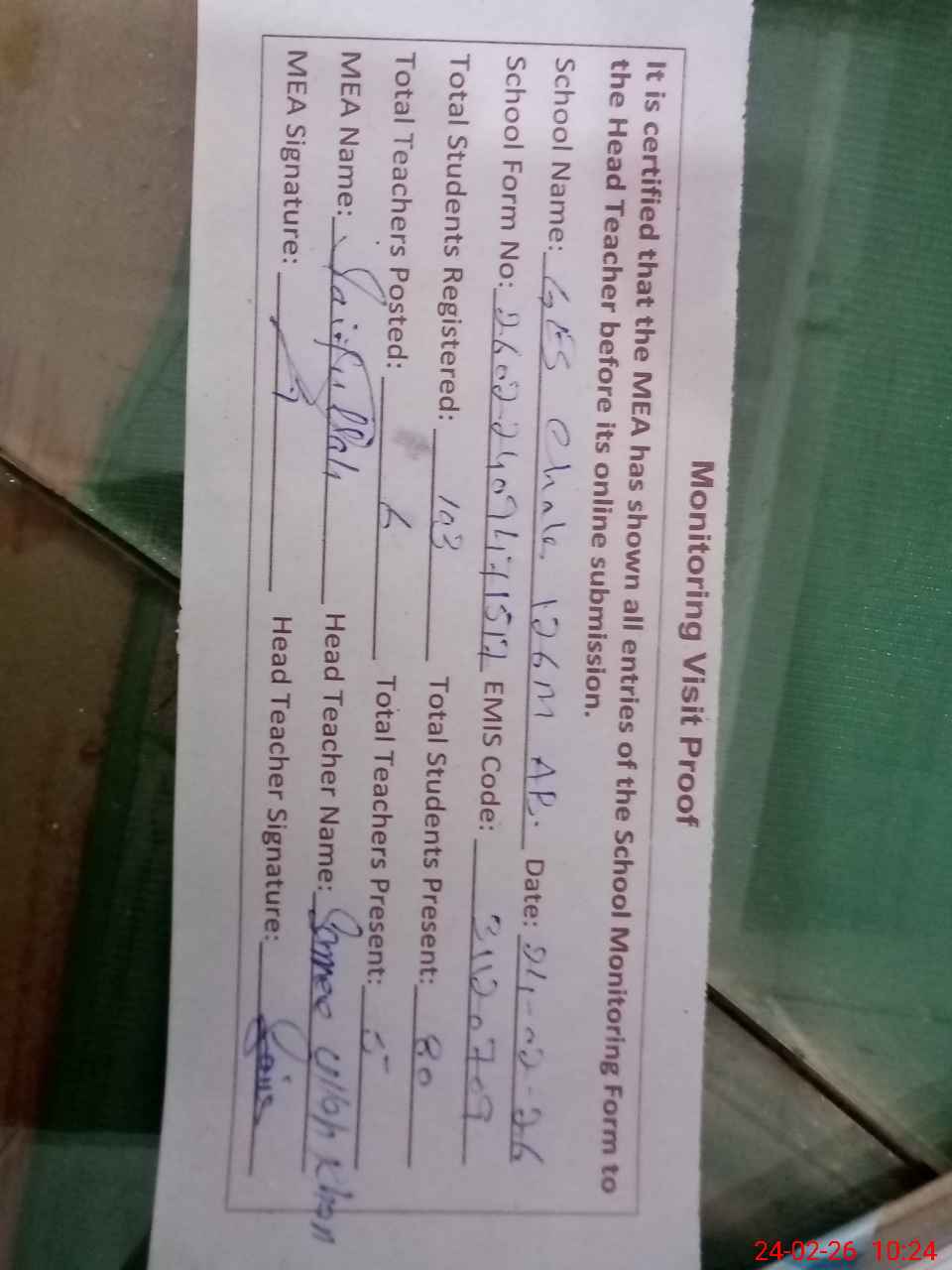 | EMIS Code: 31120709 | Name of School: GES CHAK NO.126/M AB | |||
