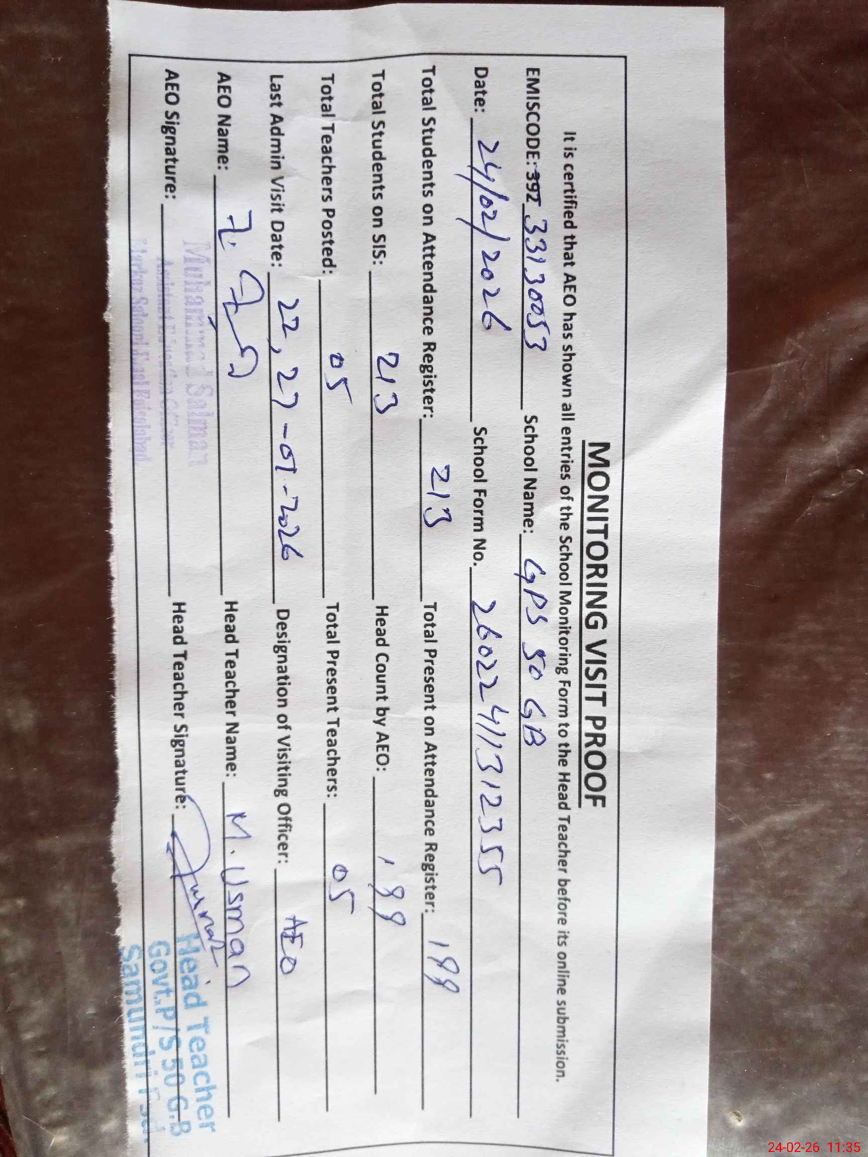 | EMIS Code: 33130053 | Name of School: GPS CHAK 50 GB SAMUNDRI | |||