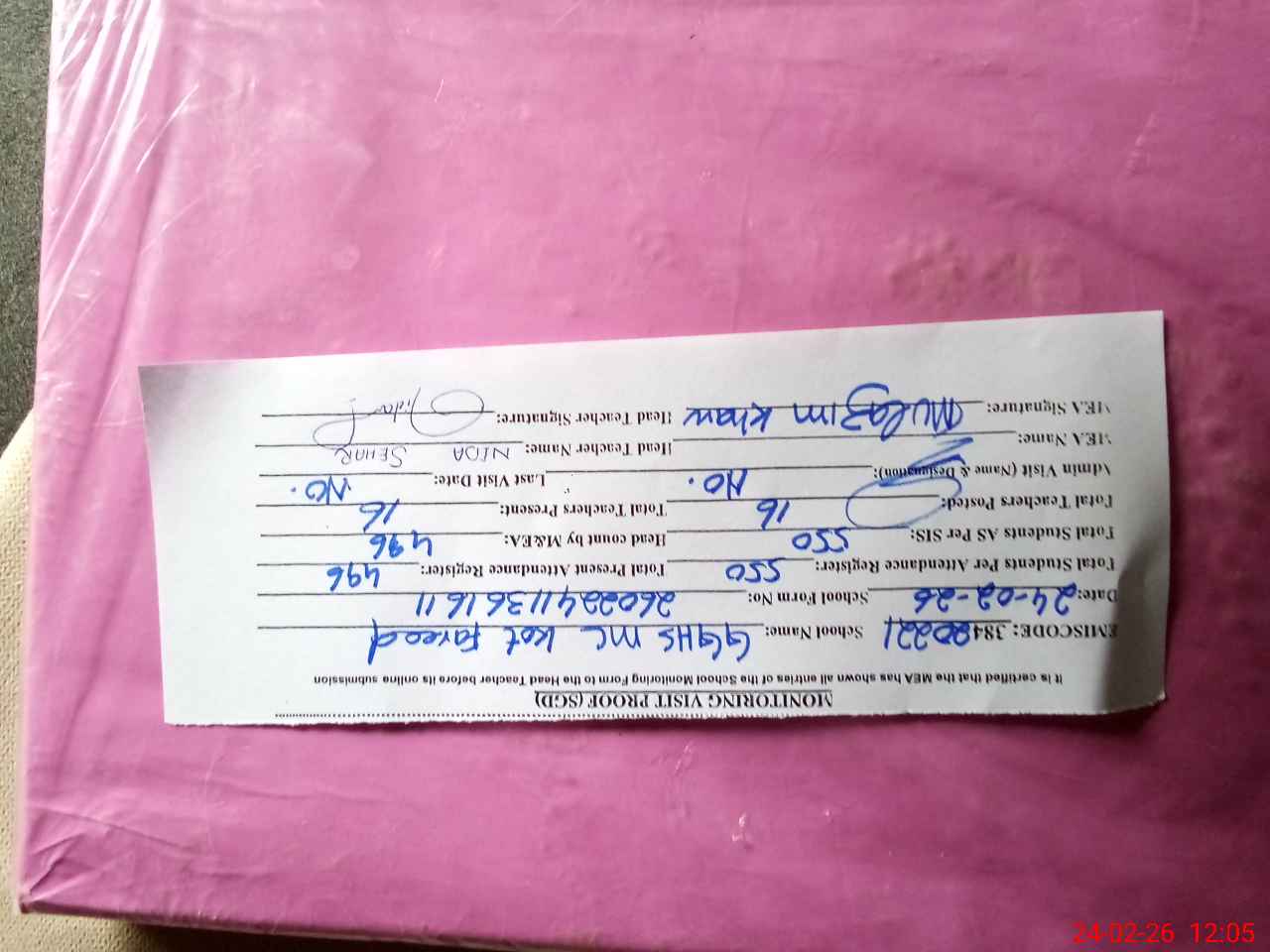 | Attendance Register | Head Teacher | MEA with School | Visit Proof |