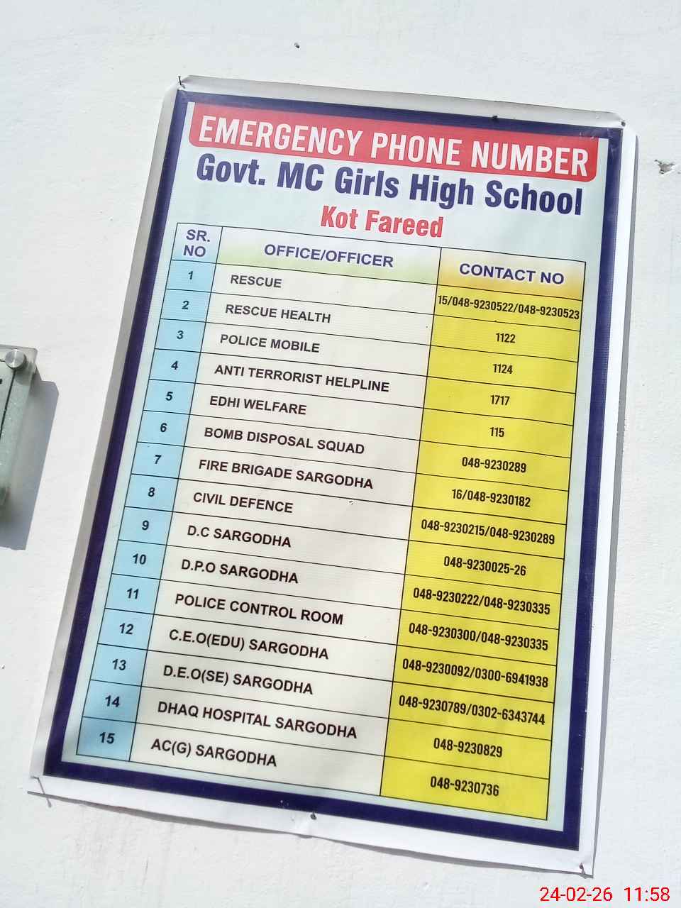 | EMIS Code: 38420221 | Name of School: GGHS MC KOT FAREED | |||