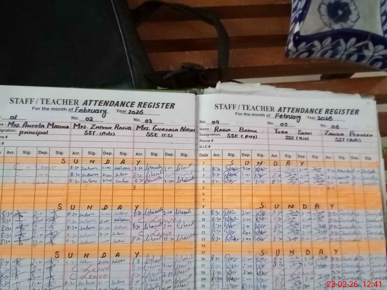 | CNIC | Full Name | Designation | R/C | Absence During Last Calender Month |
