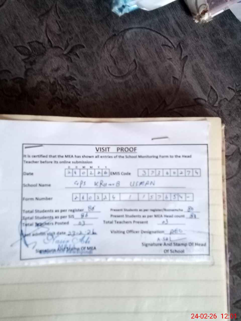 | EMIS Code: 37360274 | Name of School: GPS KARNAB USMAN | |||