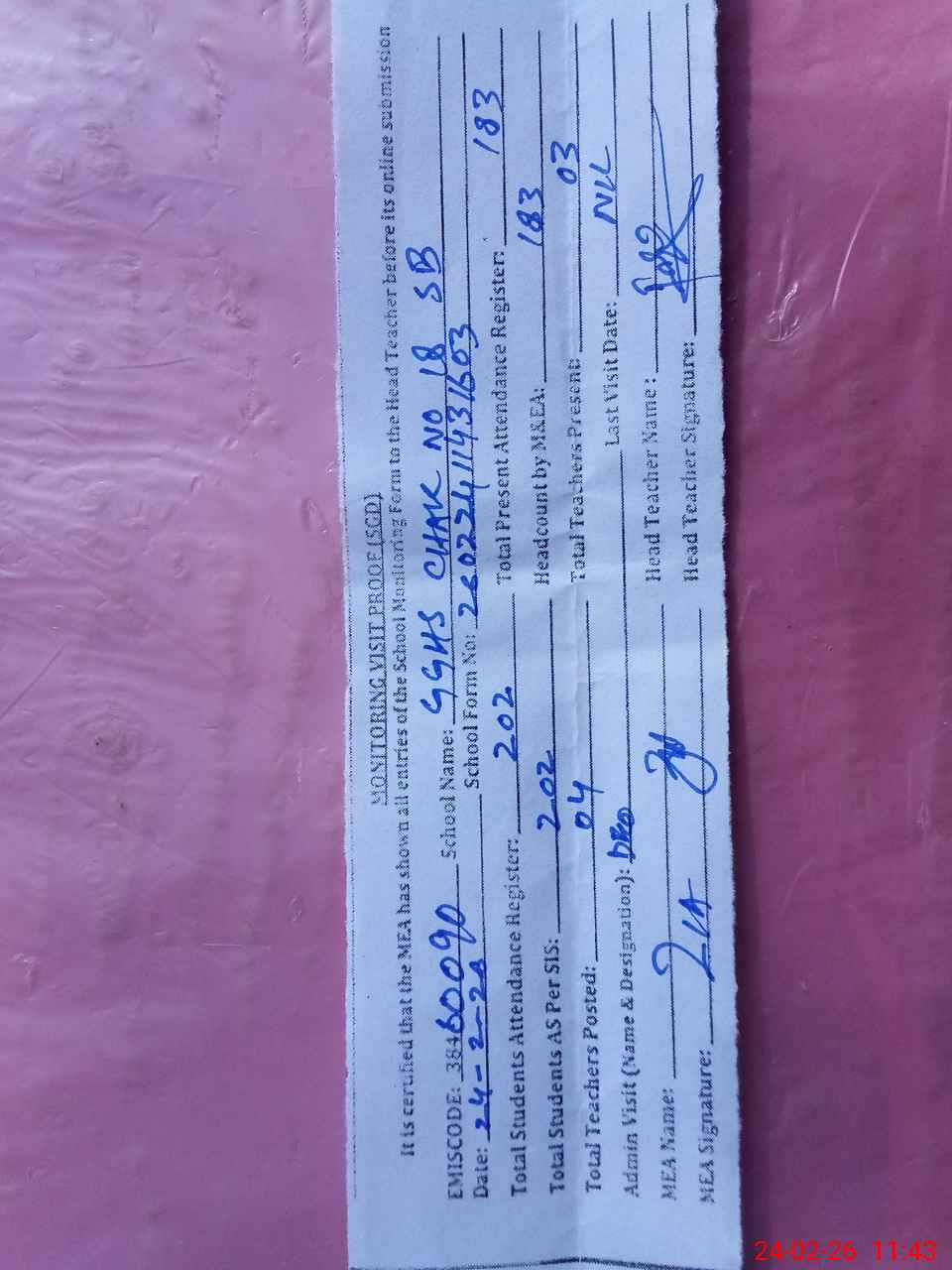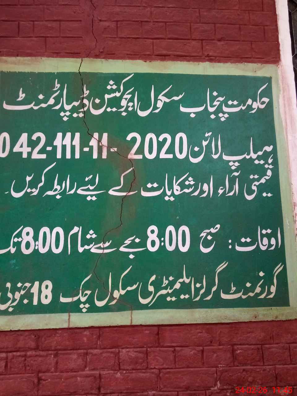 | EMIS Code: 38460090 | Name of School: GGHS CHAK NO.18 SB | |||