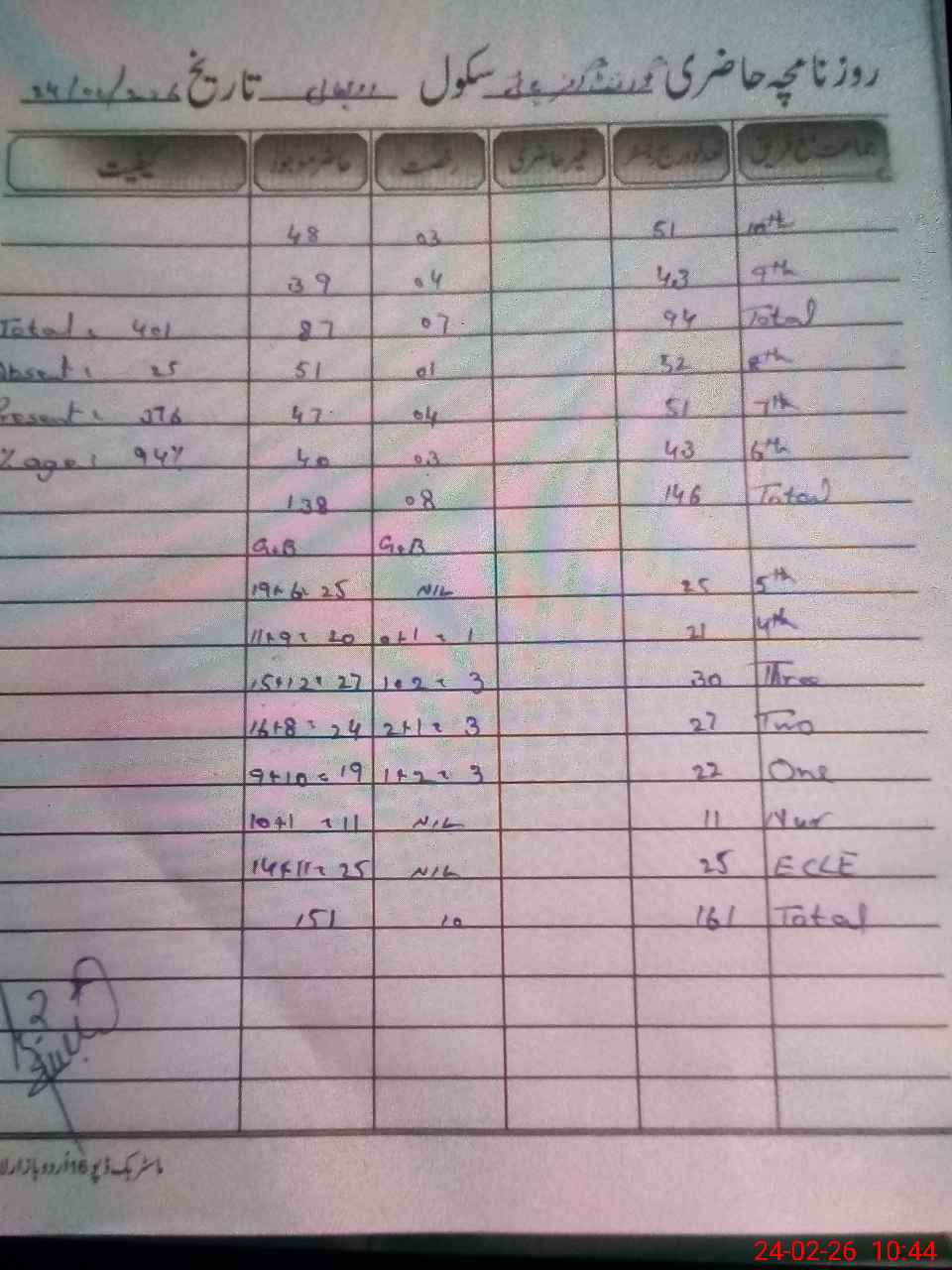 | Total Students Present | 0 | 25 | 19 | 24 | 27 | 20 | 25 | 40 | 47 | 51 | 39 | 48 | 376 | |||