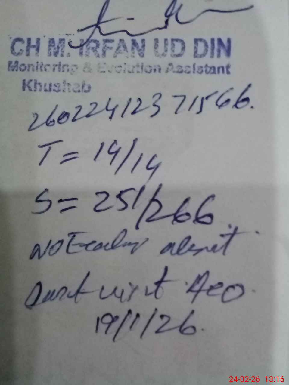| Remarks (Use Separate Page if Required): ghs mardwal student on sis 266 student on register 266 head count 251 no teacher absent last visit 19/1/26 security guard required | |||||