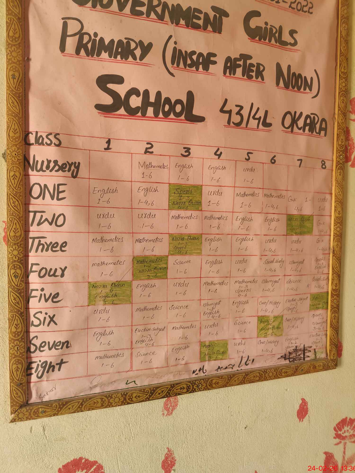 | District: OKARA | Tehsil: OKARA | Markaz: SHAHBORE - FEMALE | Level: Primary | |