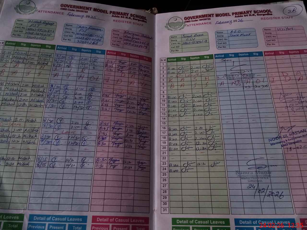 | CNIC | Full Name | Designation | R/C | Absence During Last Calender Month |