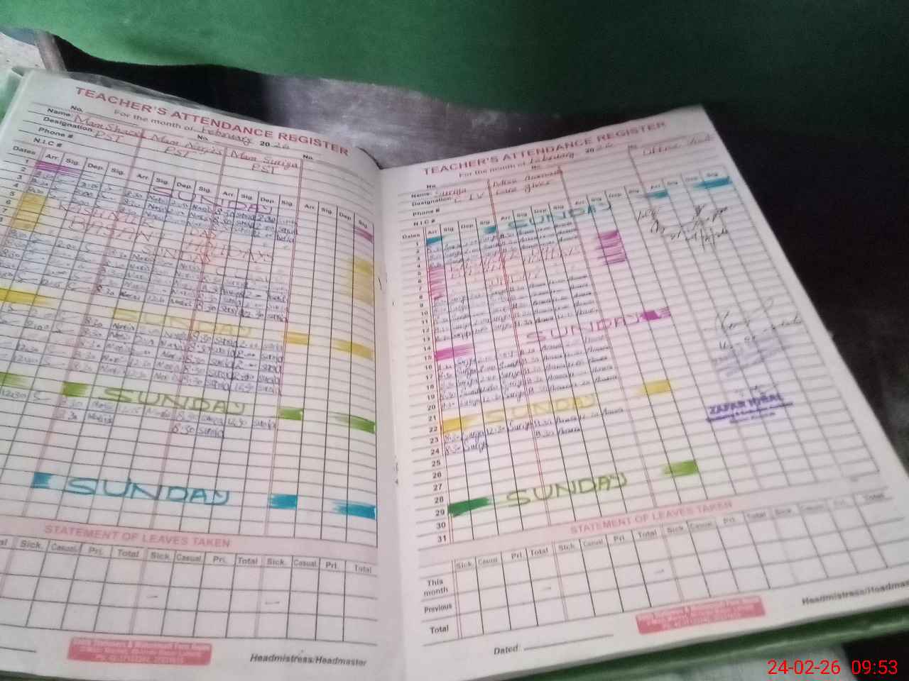 | CNIC | Full Name | Designation | R/C | Absence During Last Calender Month |