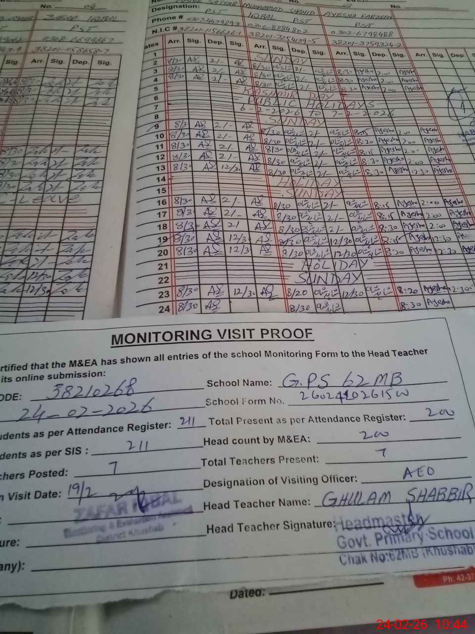 | Remarks (Use Separate Page if Required): Last visit AEO 19 Feb 26 Total on register 211 Total on sis 211 | |||||
