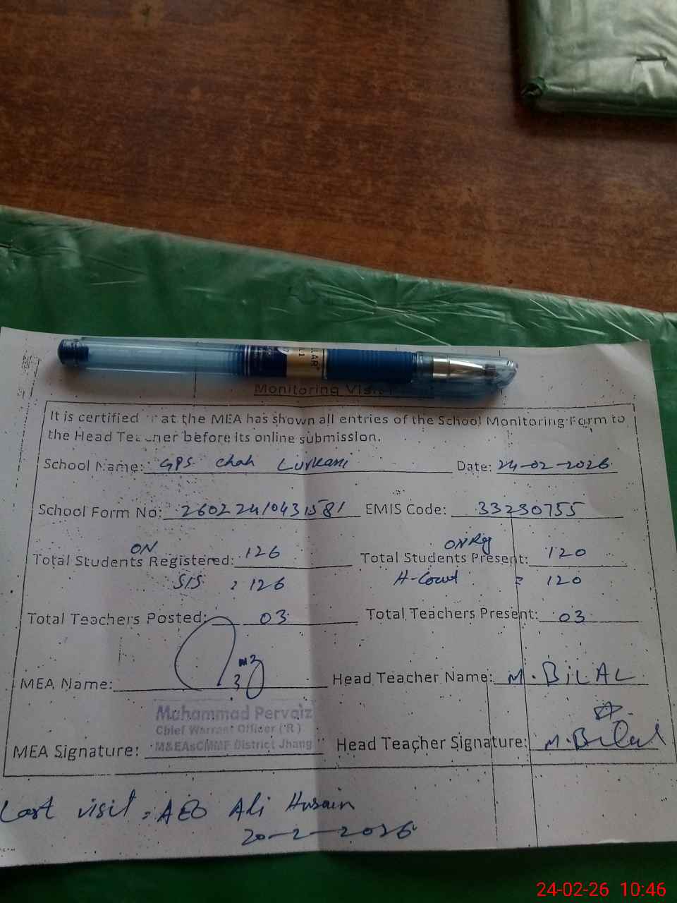 | EMIS Code: 33230755 | Name of School: GPS CHAH LURKANI | |||