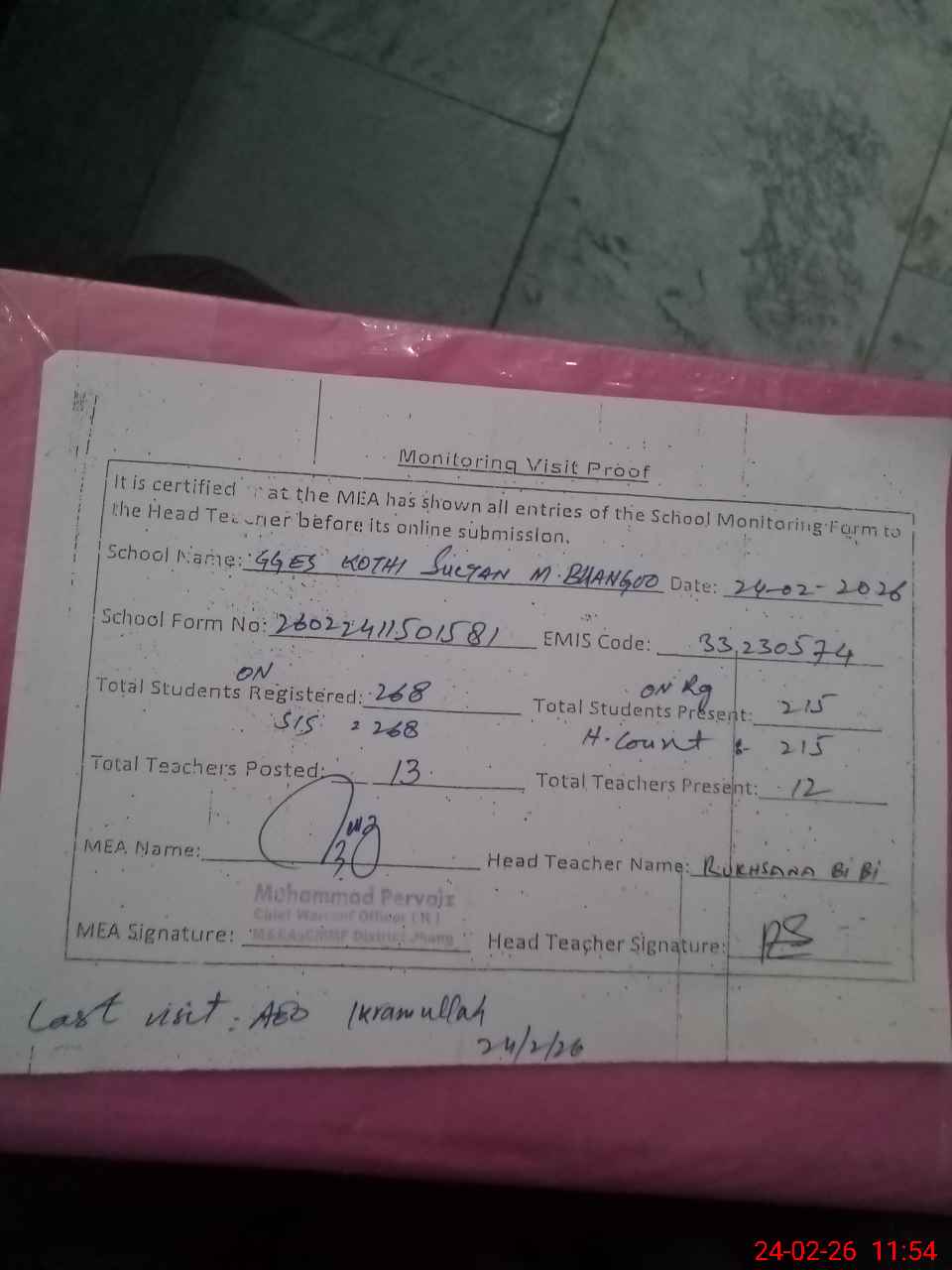| EMIS Code: 33230574 | Name of School: GGES KOTHI SULTAN MAHMOOD BHANGOO | |||