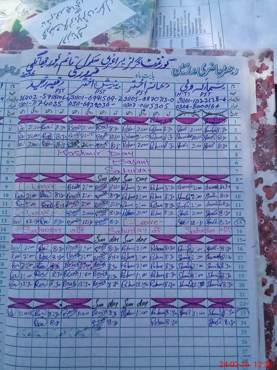 | Name: Sh**** Wa**** Designation: (School Headmaster's/Headmistress's) PST Phone/Cell Number: 03**** |