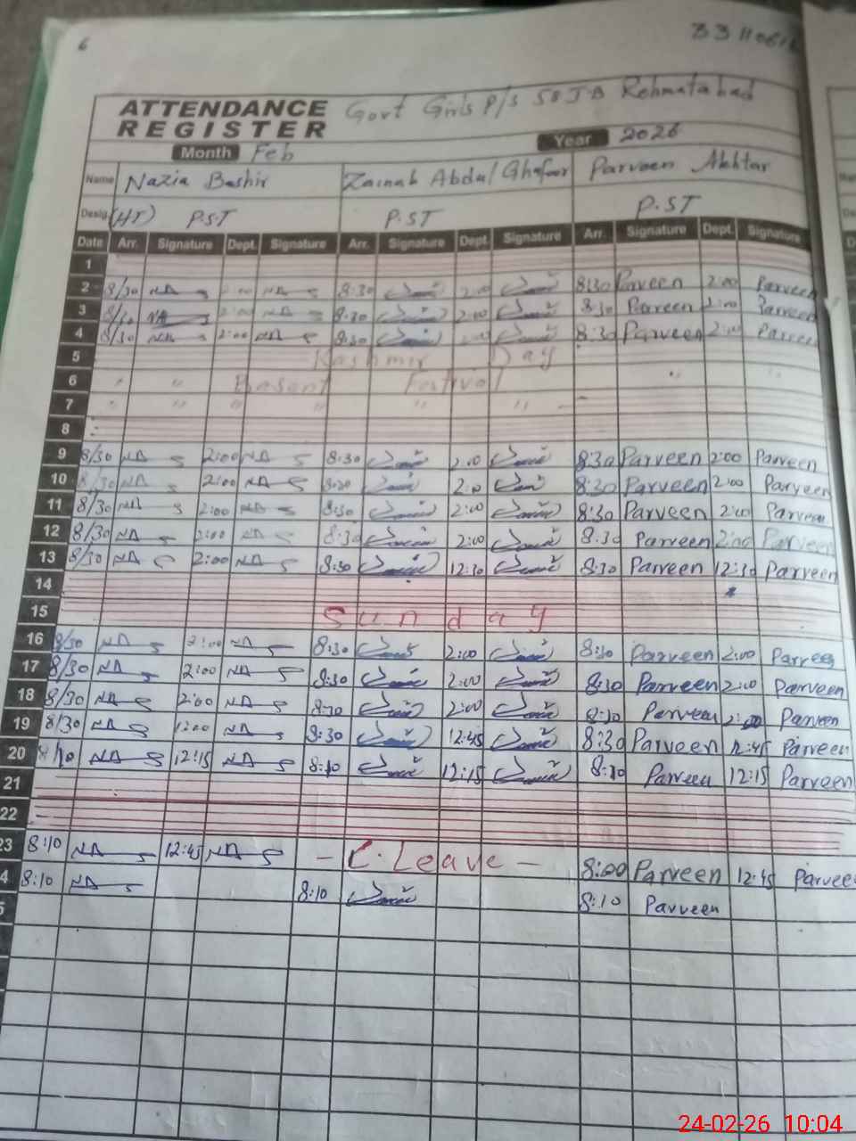 | Leave | Duty | Absent | Maternity | Medical | Ex- Pak |