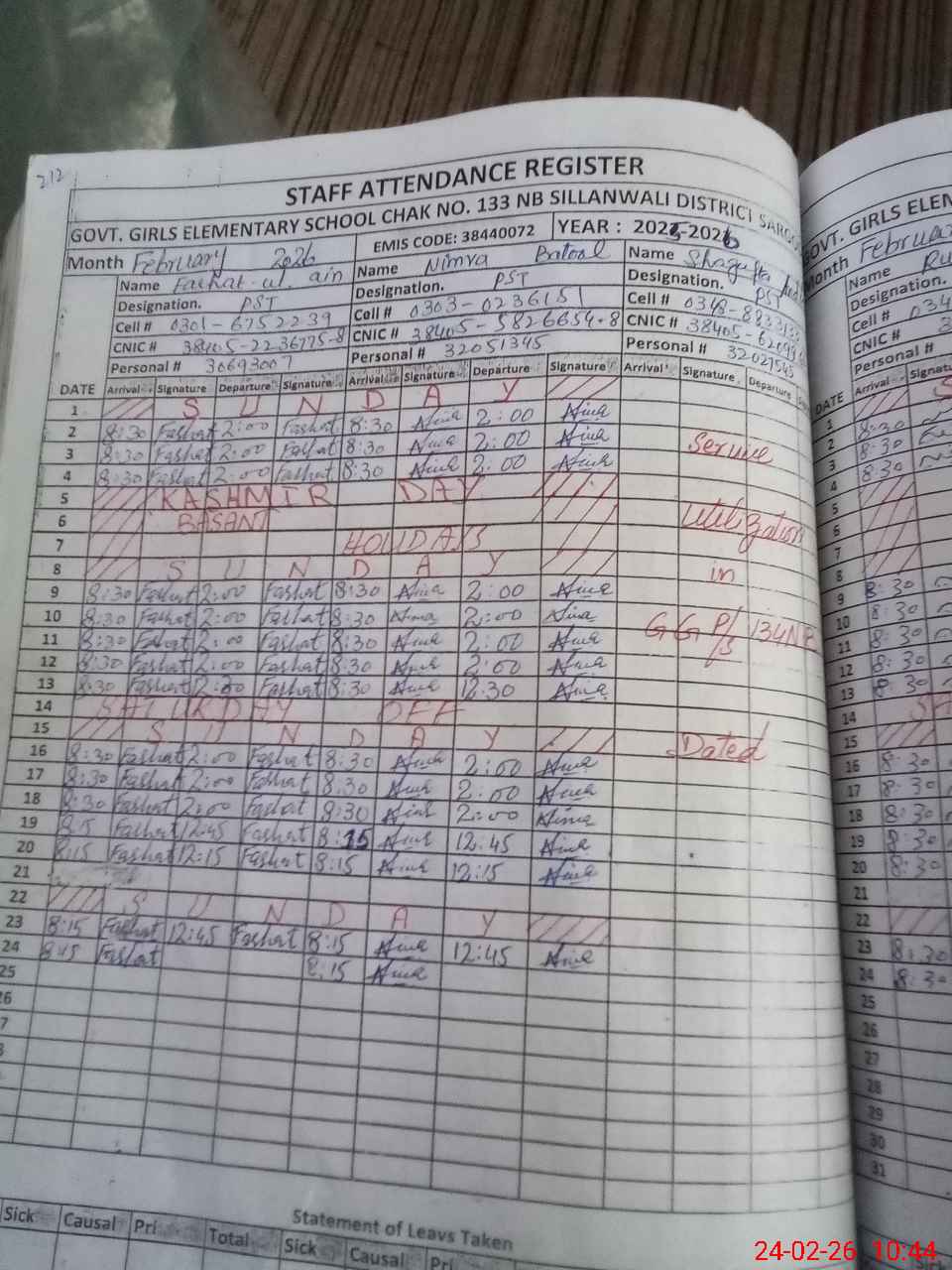 | 38**** | Sh**** An**** | PST Arts | Regular | 0 | 0 | 0 | 0 | 0 | 0 | 0 | 0 | 0 | Absent (Un-Authorized) |