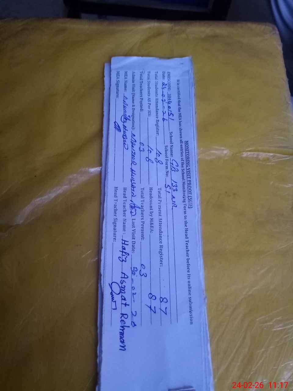 | Certified that this School was Inspected by the Undersigned MEA/DMO Today and the Information Stated Above is as Per Record. | |||||