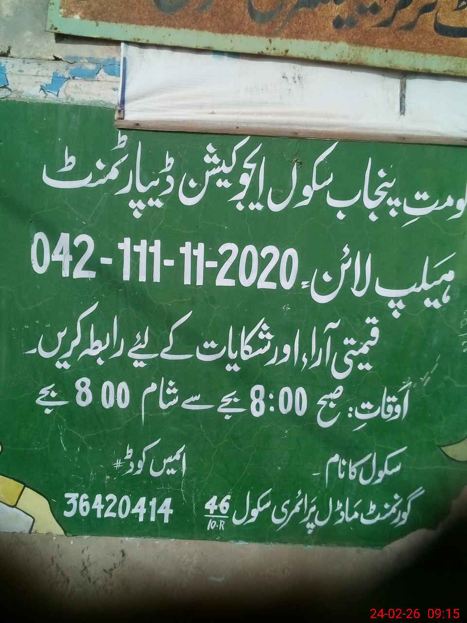 | EMIS Code: 36420414 | Name of School: GMPS 46/10-R, KHANEWAL | |||
