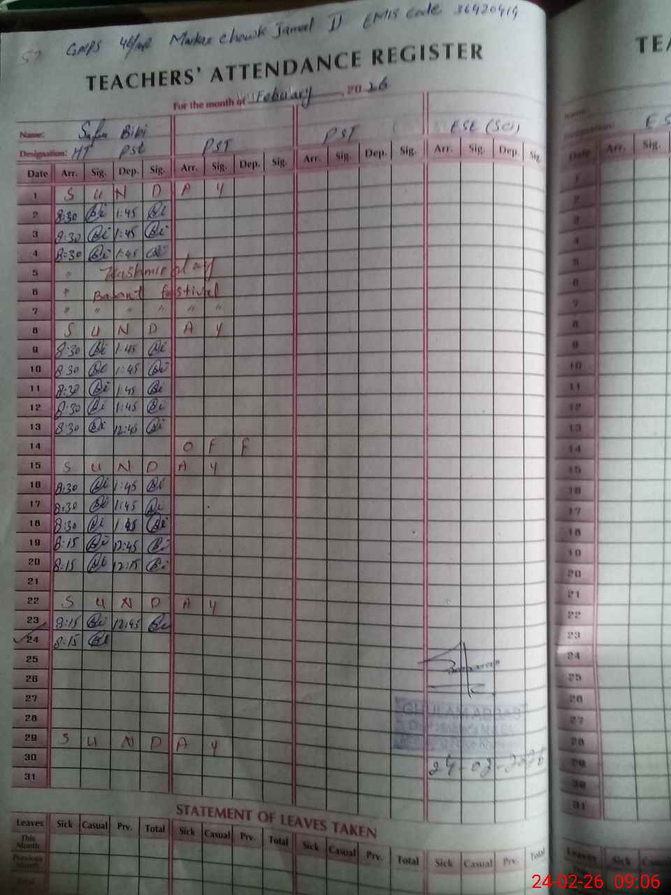| Name: Sa**** Bi**** Designation: (School Headmaster's/Headmistress's) PST Phone/Cell Number: 03**** |