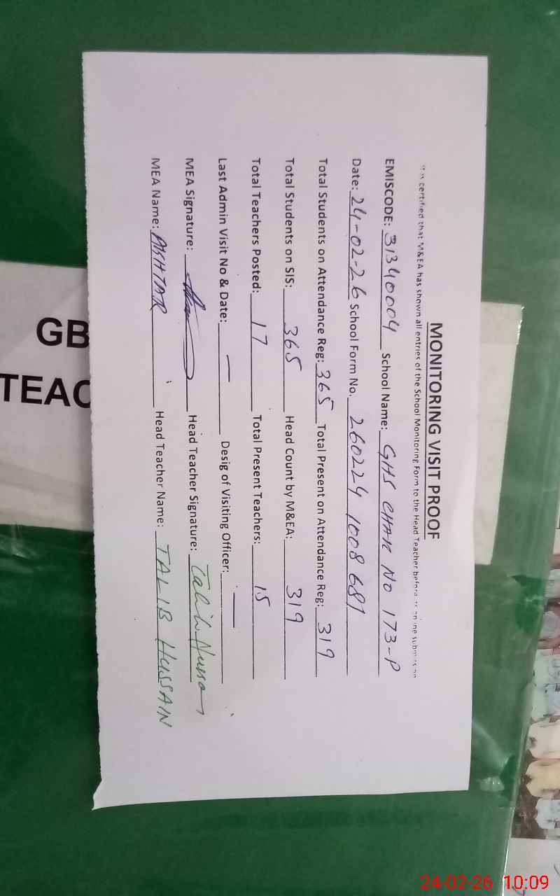 | EMIS Code: 31340004 | Name of School: GHS CHAK 173/P | |||