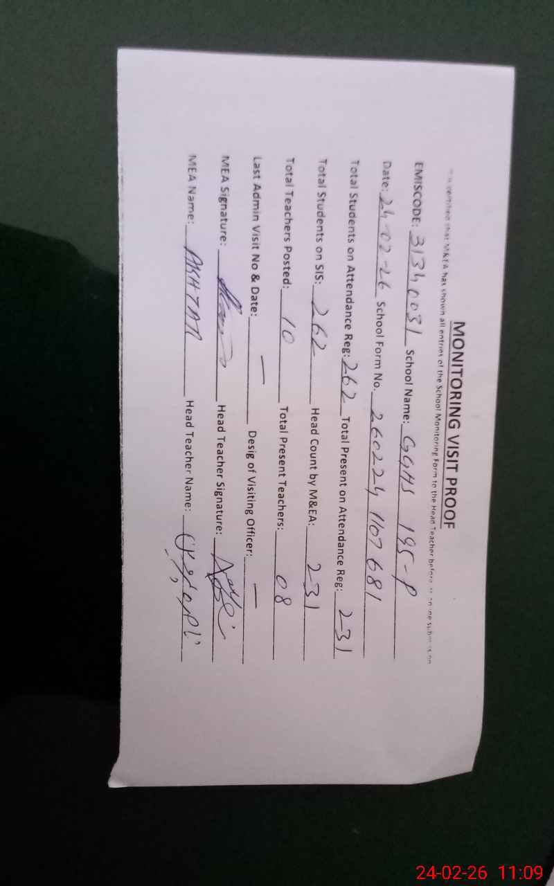 | Attendance Register | Head Teacher | MEA with School | Visit Proof |