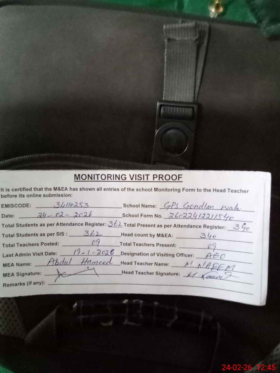 | EMIS Code: 34110253 | Name of School: GPS GONDLAN WALA | |||