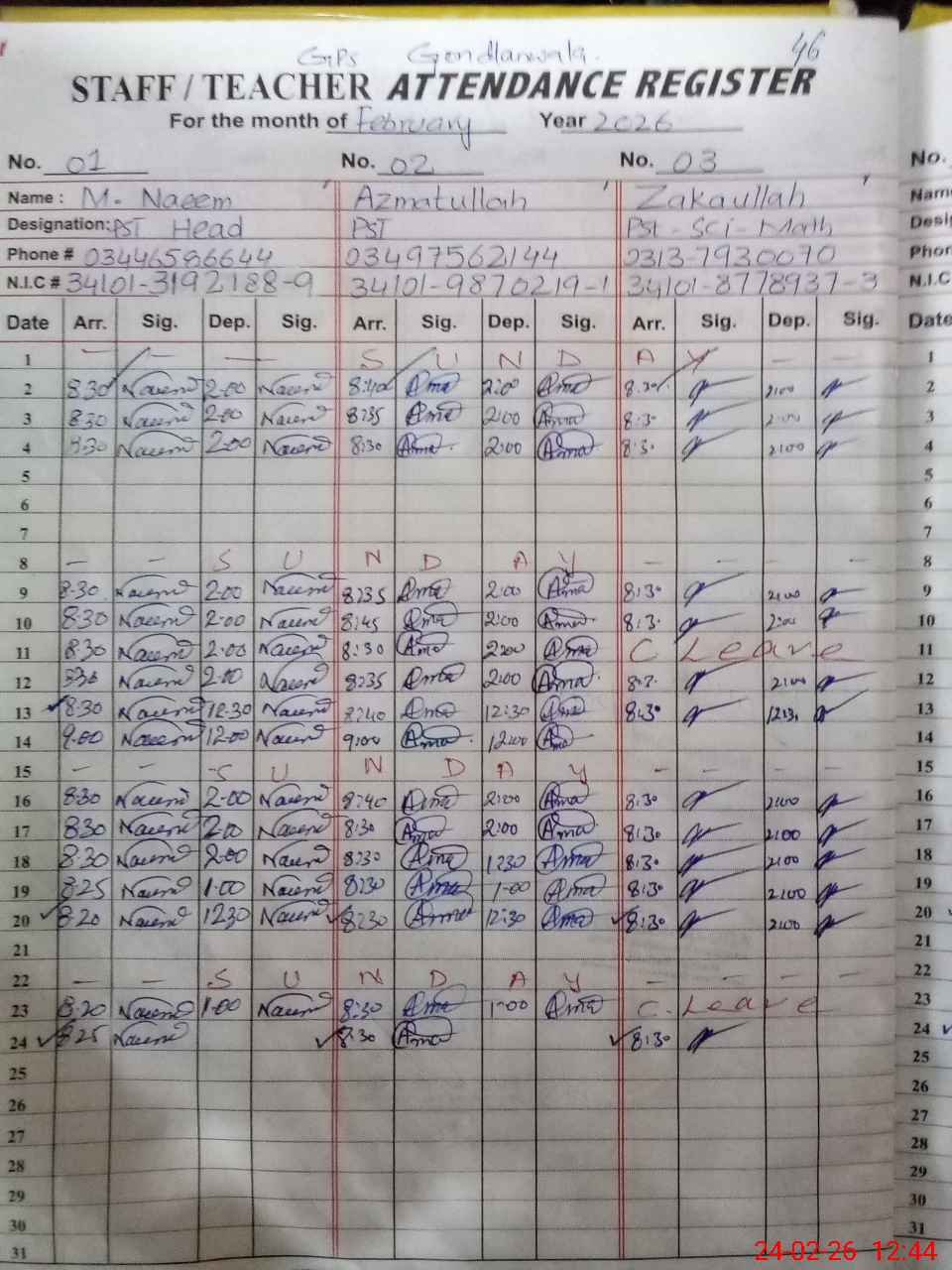 | Name: Mu**** Na**** Designation: (School Headmaster's/Headmistress's) PST Phone/Cell Number: 03**** |