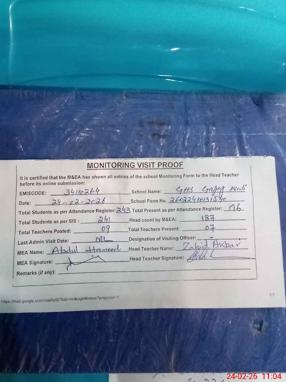 | EMIS Code: 34110264 | Name of School: GHS GAGAY WALI | |||