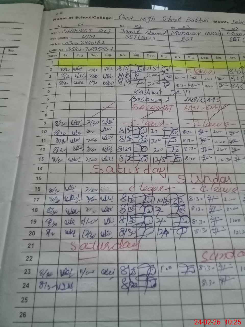 | Name: Sh**** Al**** Designation: (School Headmaster's/Headmistress's) Incharge Head Master Phone/Cell Number: 03**** |