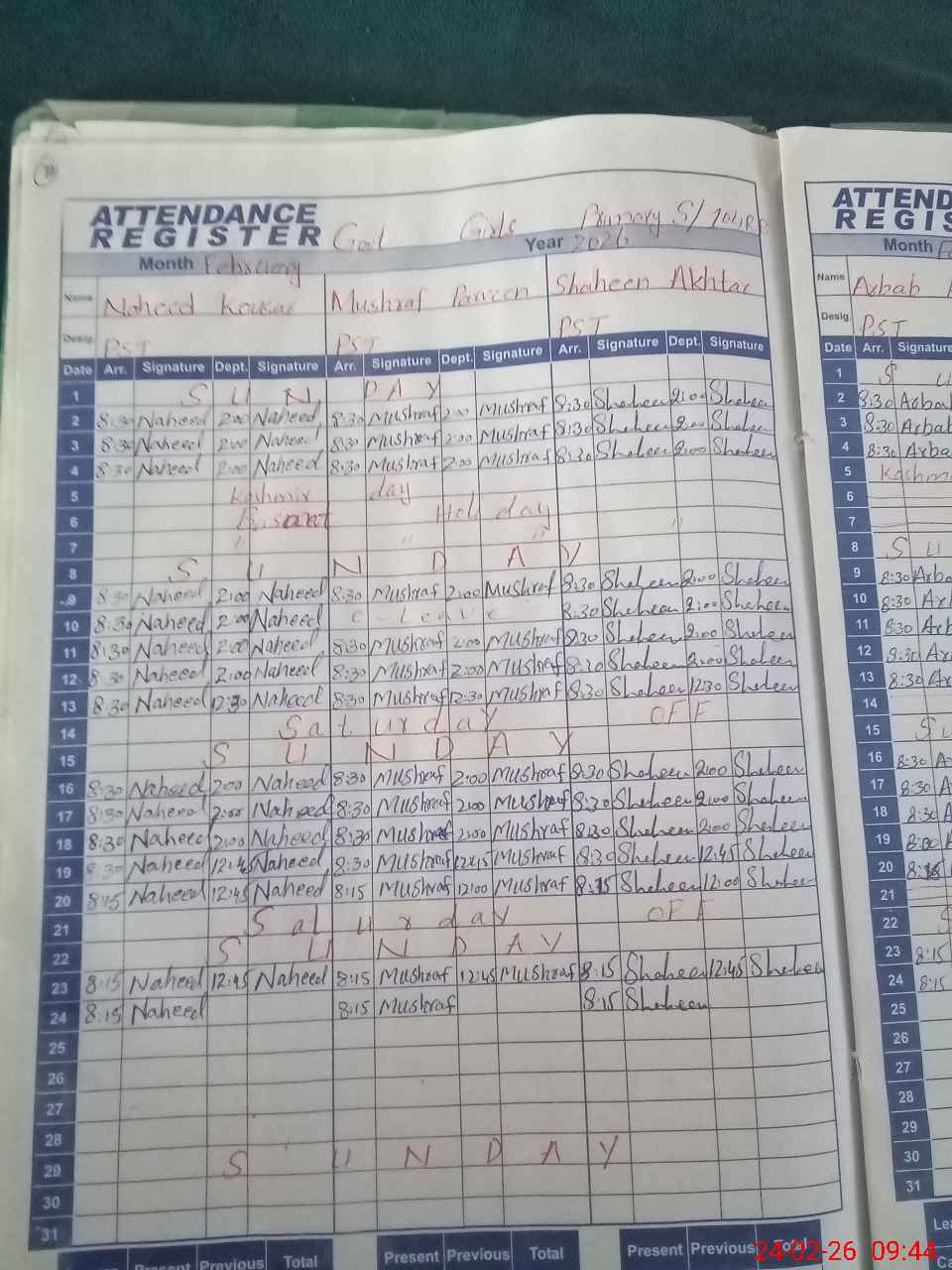 | Leave | Duty | Absent | Maternity | Medical | Ex- Pak |
