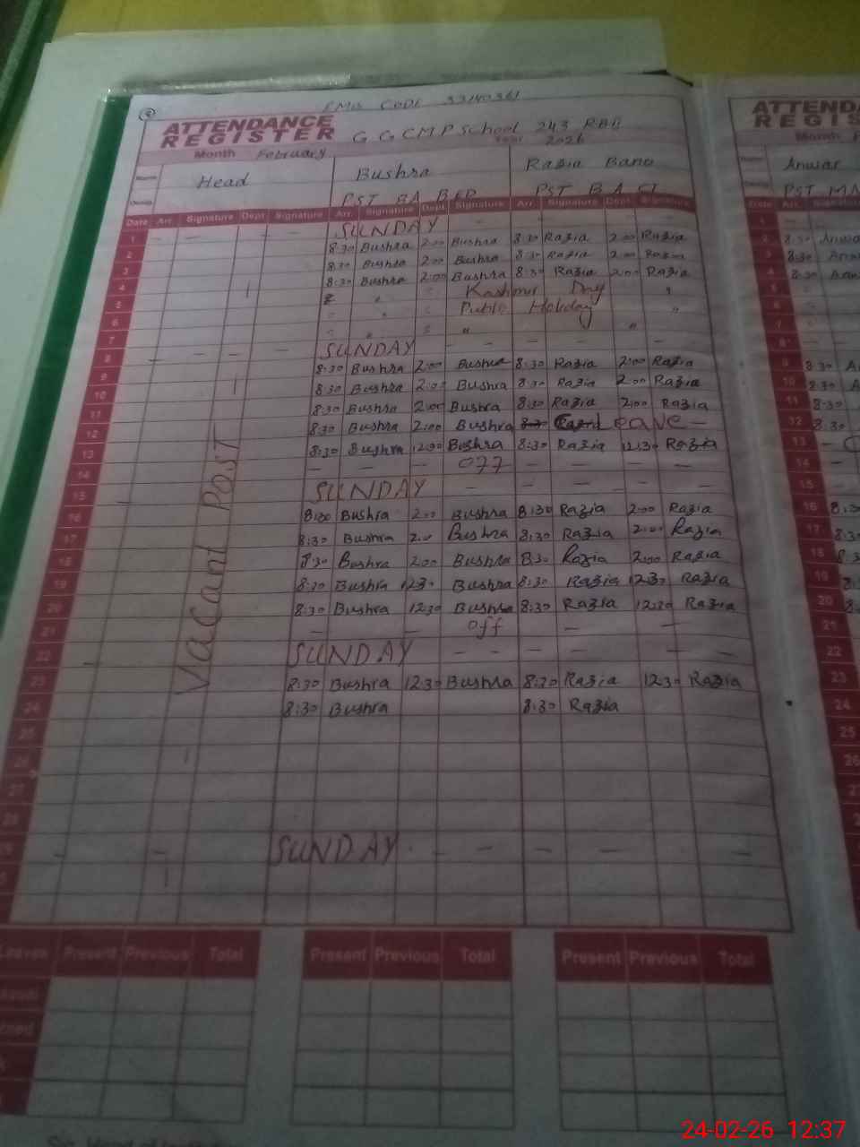 | Name: Bu**** Designation: (School Headmaster's/Headmistress's) PST Phone/Cell Number: 03**** |
