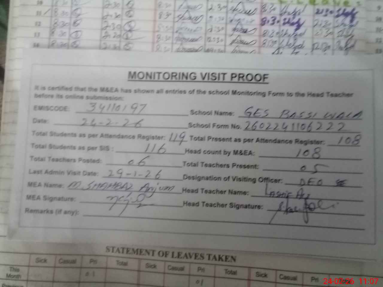 | EMIS Code: 34110197 | Name of School: GES BASSI WALA | |||