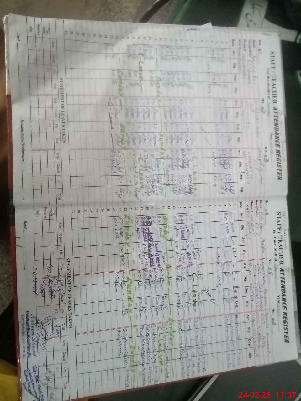 | Total no. of Classrooms: 8 No. of Classrooms Used for Teaching: 7 No. of Classrooms Storing Old Furniture, FTBs, etc: 0Comments if Any: AVERAGE CONDITION OF BUILDING AND SCHOOL NSB RECORD NOT MAINTAINED IN TAB AND REGISTER DUE TO NON AVAILABILITY OF FRESH STATEMENT FTF RECORD NOT SHOWN DUE TO RECORD PLACED WITH PREVIOUS HEAD SIR RIZWAN COVID SOPS DISPLAYED AND PARTIALLY FOLLOWING BY STA |