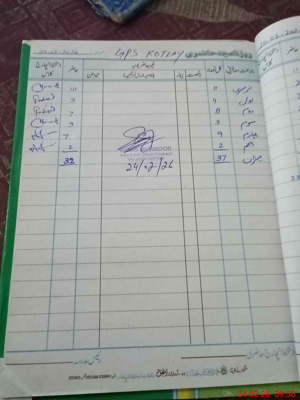 | Certified that this School was Inspected by the Undersigned MEA/DMO Today and the Information Stated Above is as Per Record. | |||||
